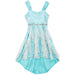 Beautiful girls dress for a special occasion! Stunning aqua blue hi low dress features soft white chiffon overlay, jeweled bodice and square neckline. Very elegant! Back zip closure.